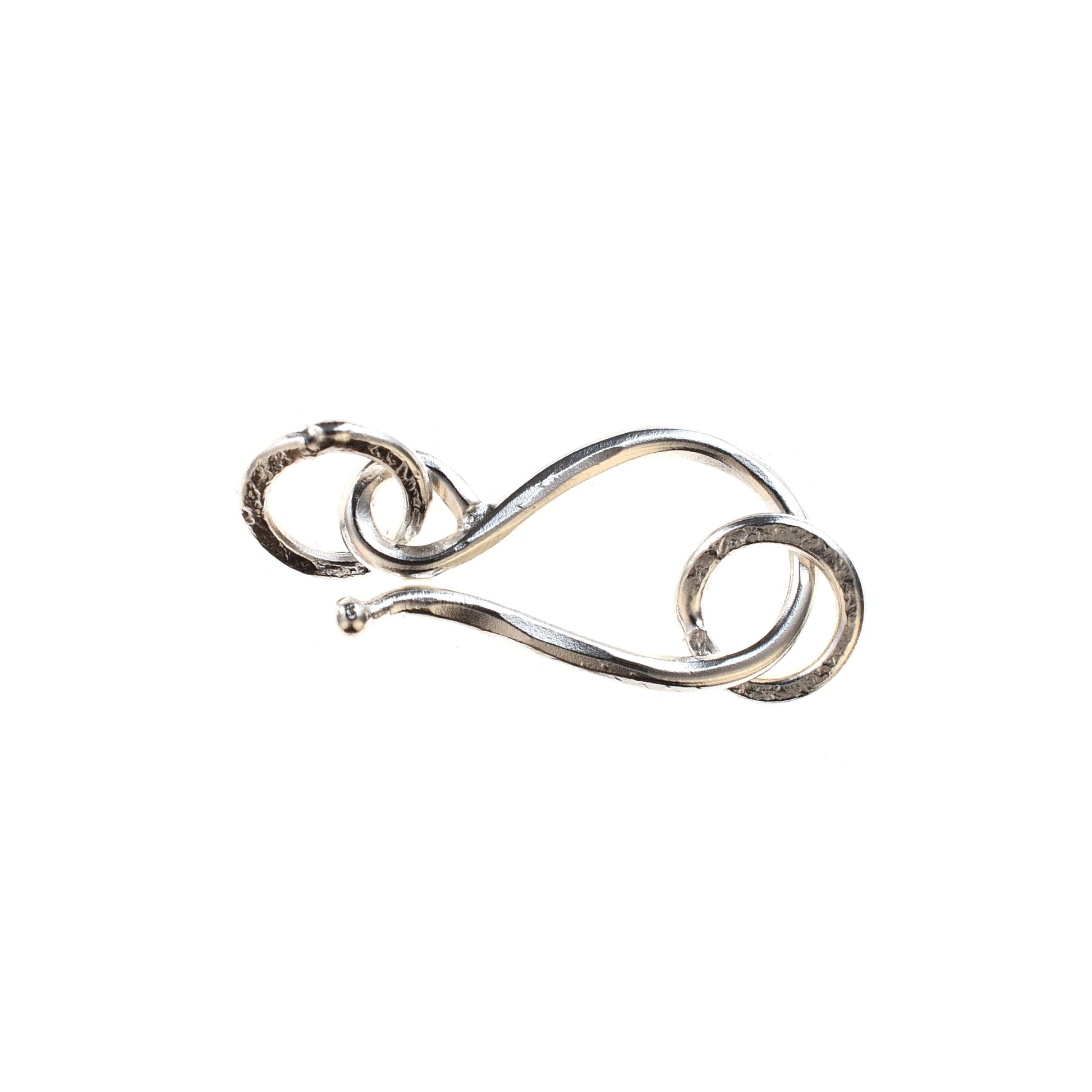 A large hook clasp with a hammered finish and textured jump rings. Each clasp measures approximately 14x30mm and weighs 2 grams. Silver plated. Hand crafted in Bali, Indonesia.